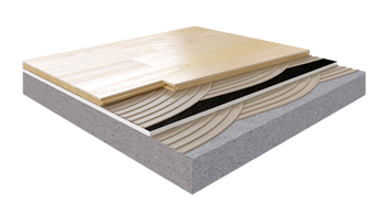 FITNESS BOARD is a two-layer engineered flooring on a shock-absorbing base with a flexible adhesive. This flooring has a deck-style pattern.